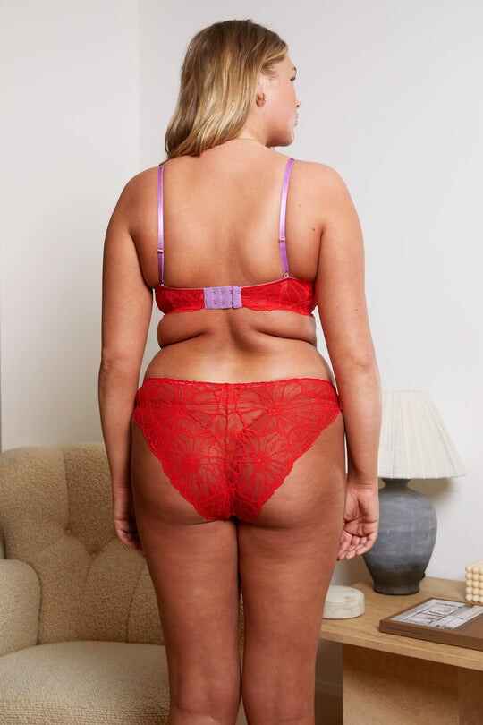 Say hello to the Alma Graphic Lace Knicker. She’s crafted in our new and exclusive lace, knitted using recycled yarns. She has a VPL-free lace back, so you can wear it with any outfit.
