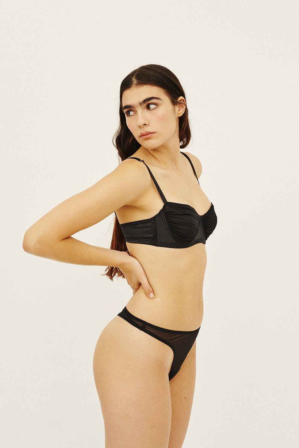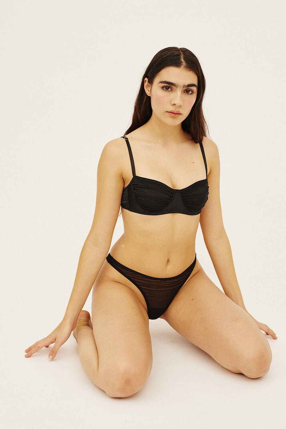 Classic silhouette thong made in Italian mesh, light elastics on the leg and waist area, and cotton reinforcement.