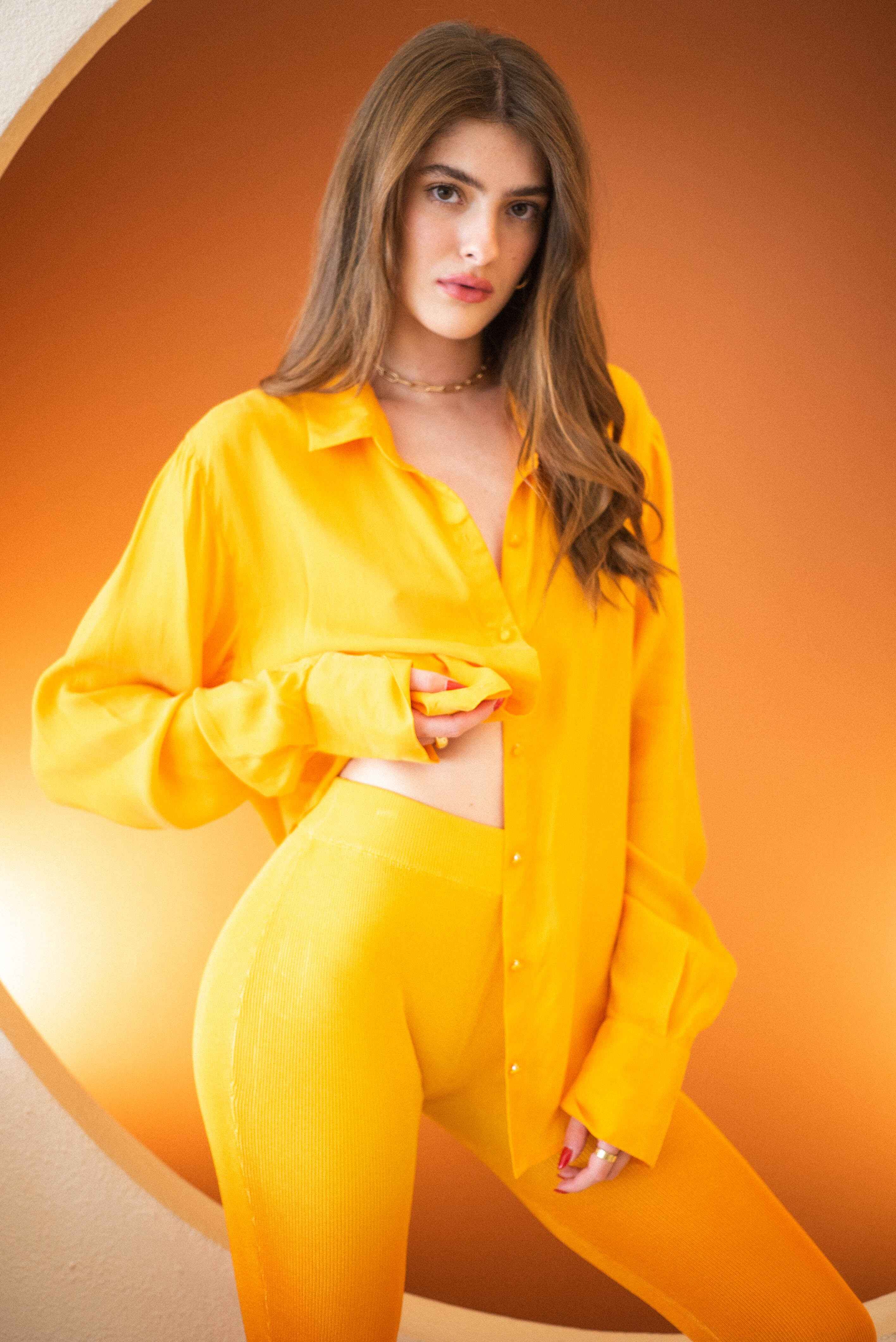 The Harper Ombre Knitted Pants featuring a split hem towards the bottom are a relaxed fit knitted pants that are so snug and cozy. Wear it up or down with heels or your favorite sneakers and make a statement with the ombre orange colorway!