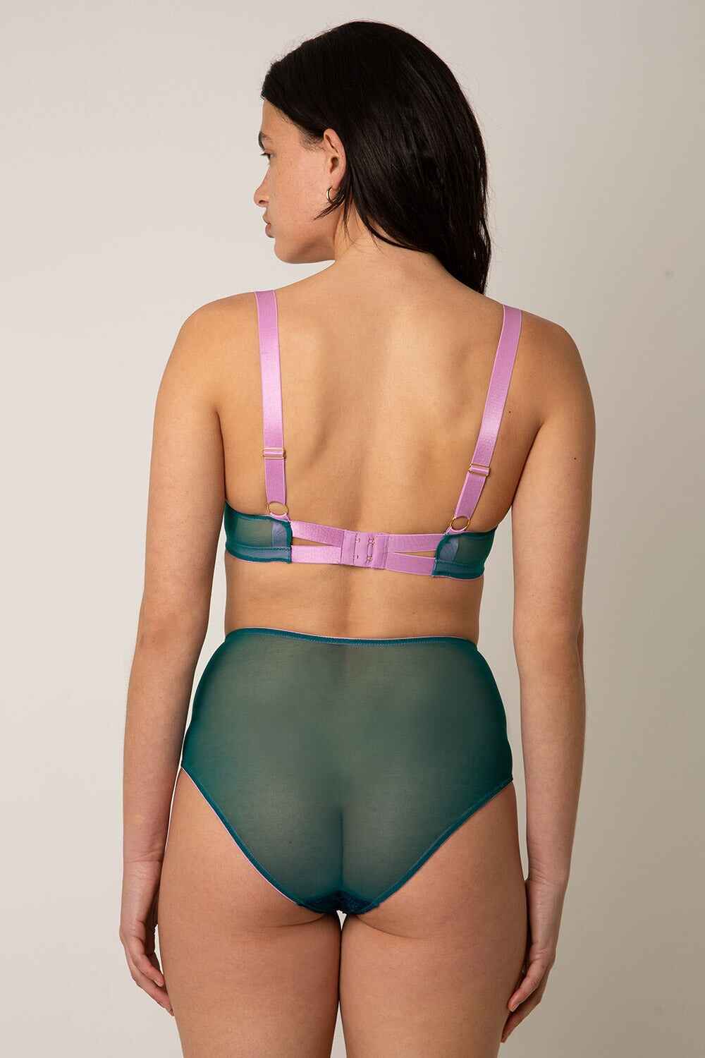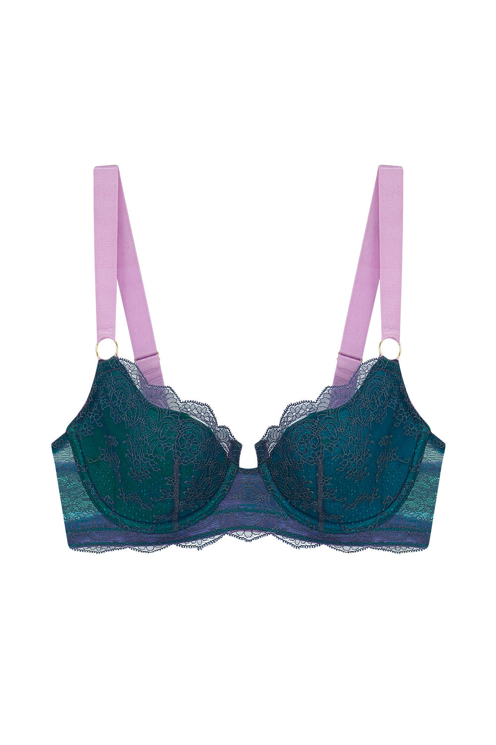 The Dora Larsen Lila Balconette Bra features a lightly padded half cup with a delicate lace overlay; her wide straps keep you feeling supported, and comfortable, all day. Lila’s lace is a bespoke design and produced exclusively for us.