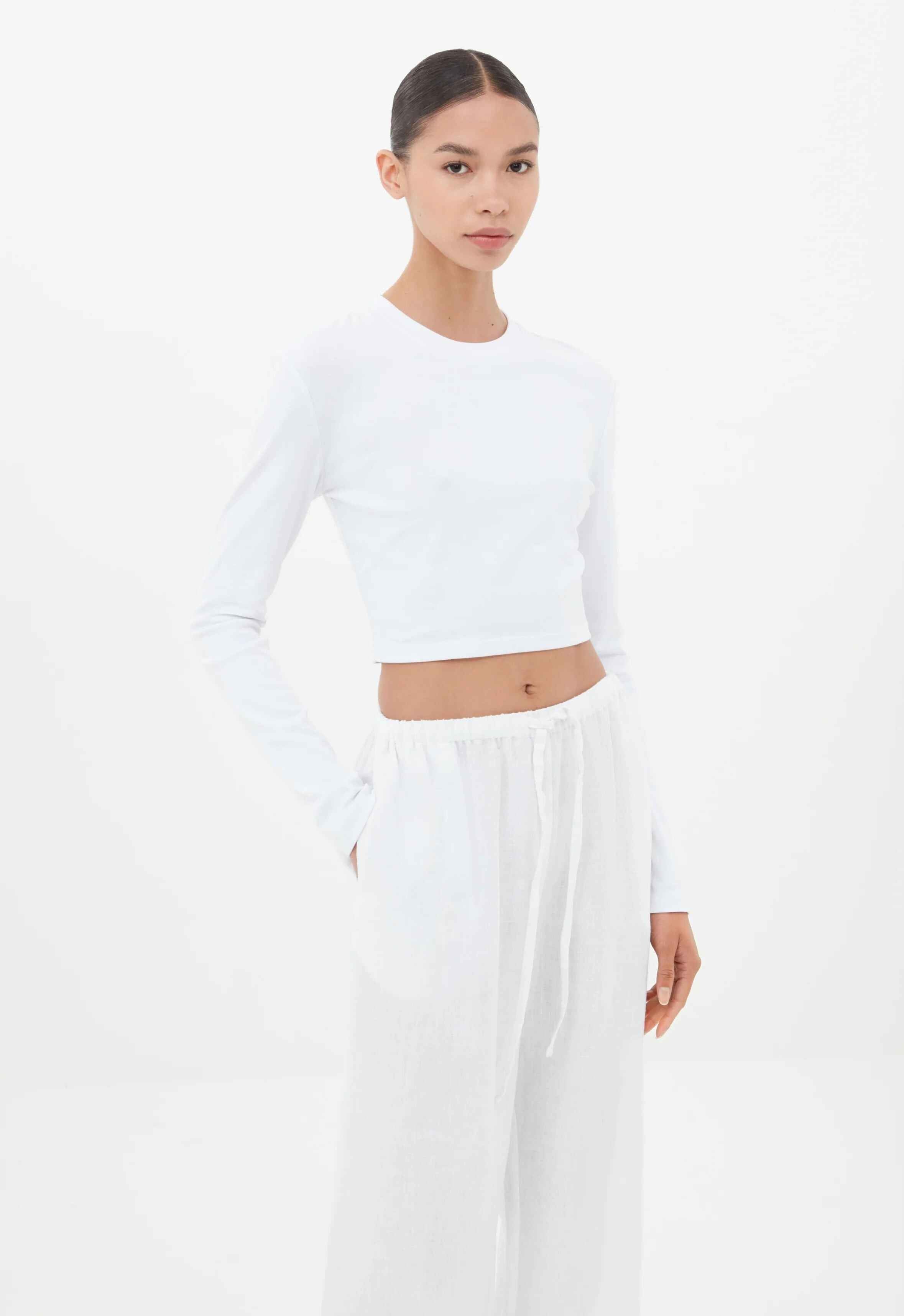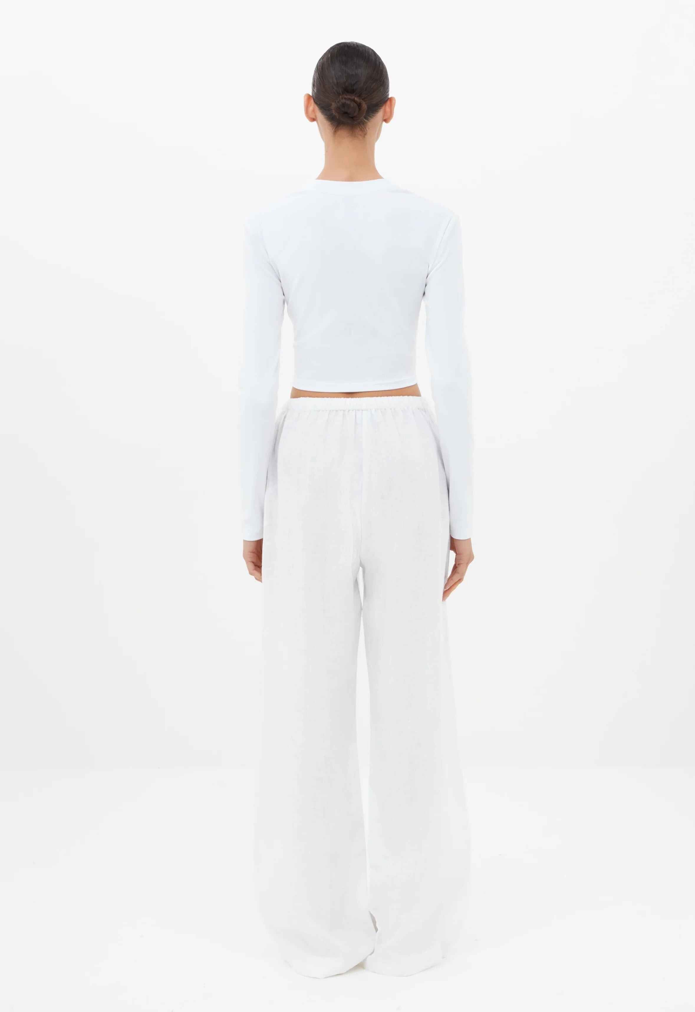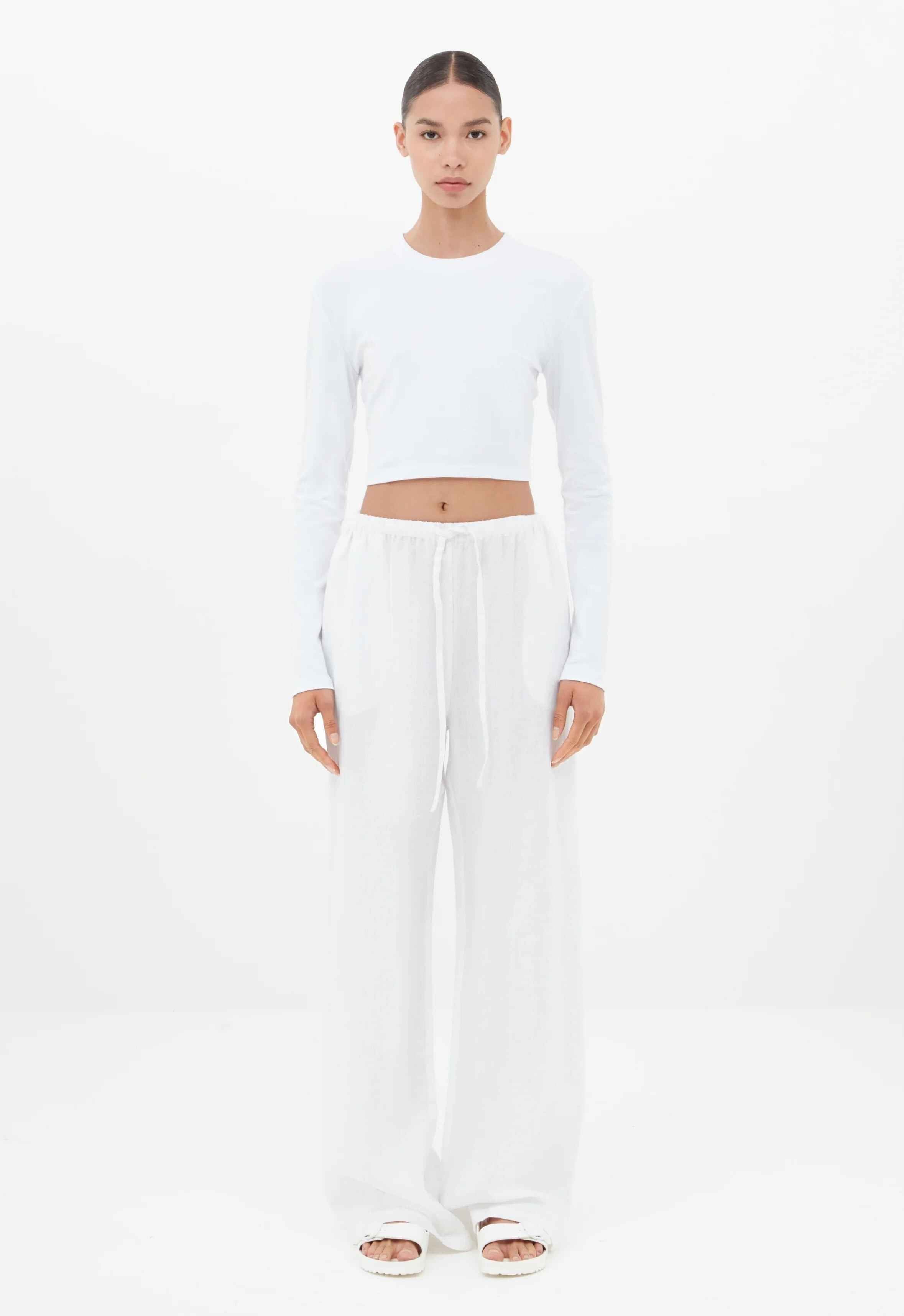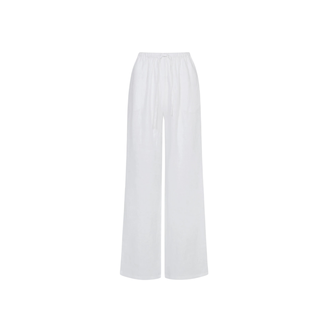 The Linen Drawstring Pant. Made from 100% linen and designed to wear high or low, with a straight leg cut, side pockets and adjustable drawstring waist. Wear with sandals or heels for a casual by day or elevated evening look.