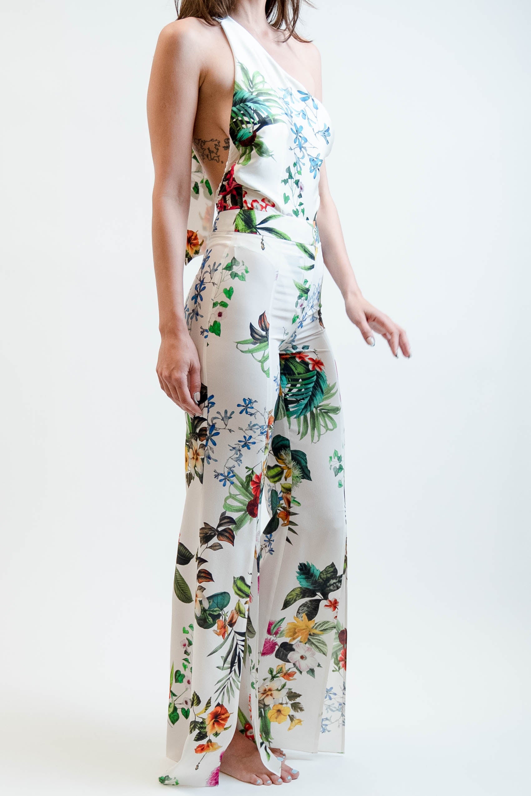 Floral print body suit with tie detail on the back, 94% Silk, 6% Elastane.