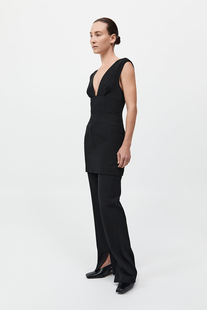 The Plunge Mini Dress is crafted from a virgin wool blend and fully lined with 100% Lyocell. Designed with a plunging V-neckline, the Plunge Mini Dress offers a bold yet refined statement. Perfect for evening wear or layered with tailored outerwear for a modern edge.