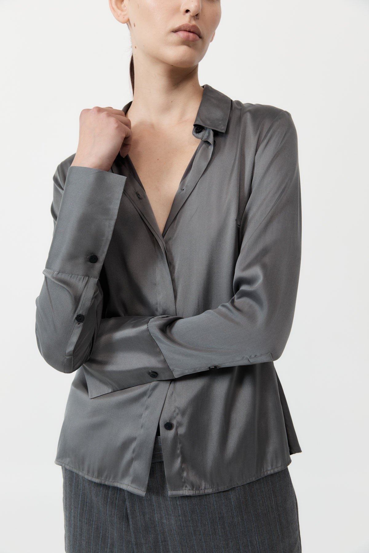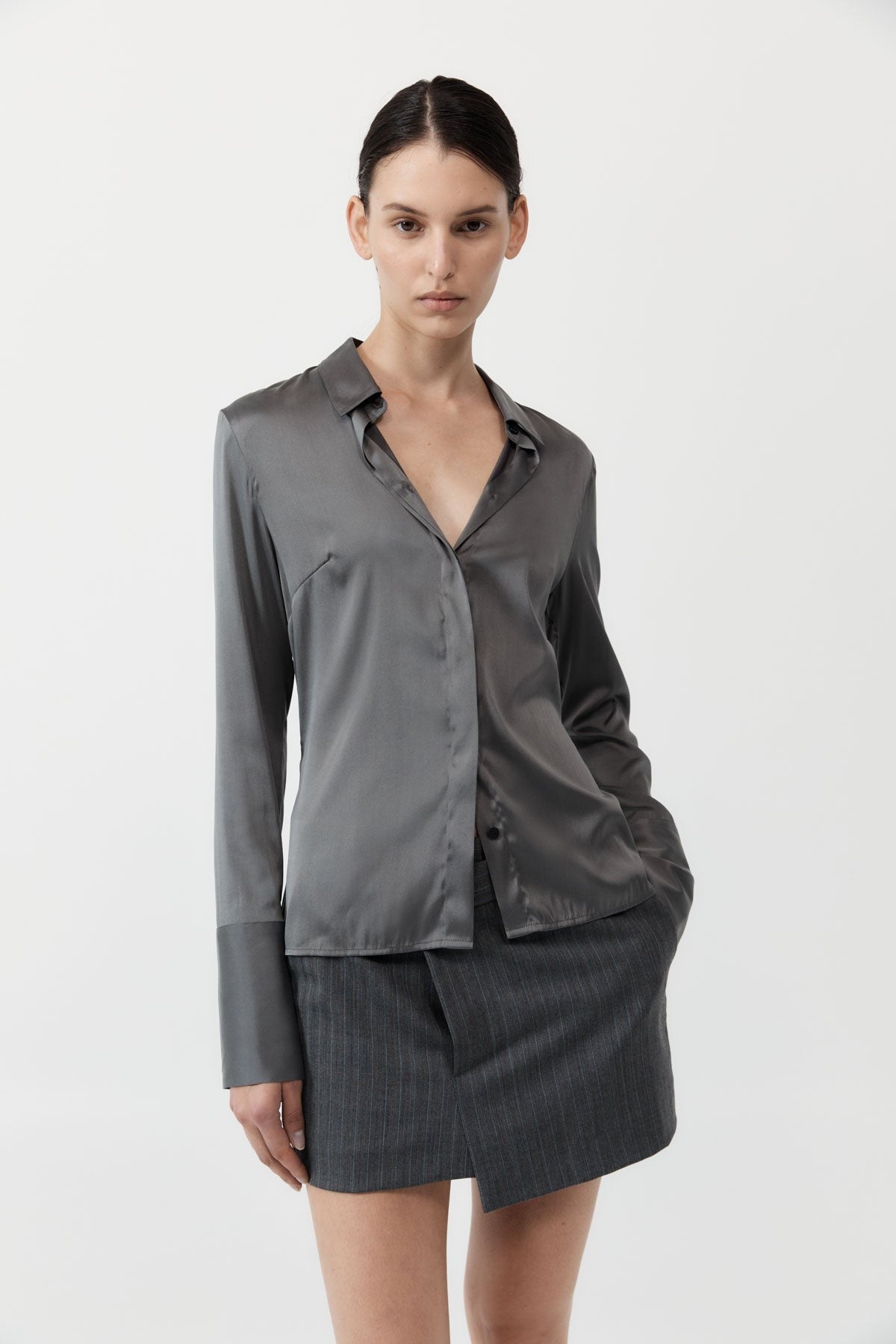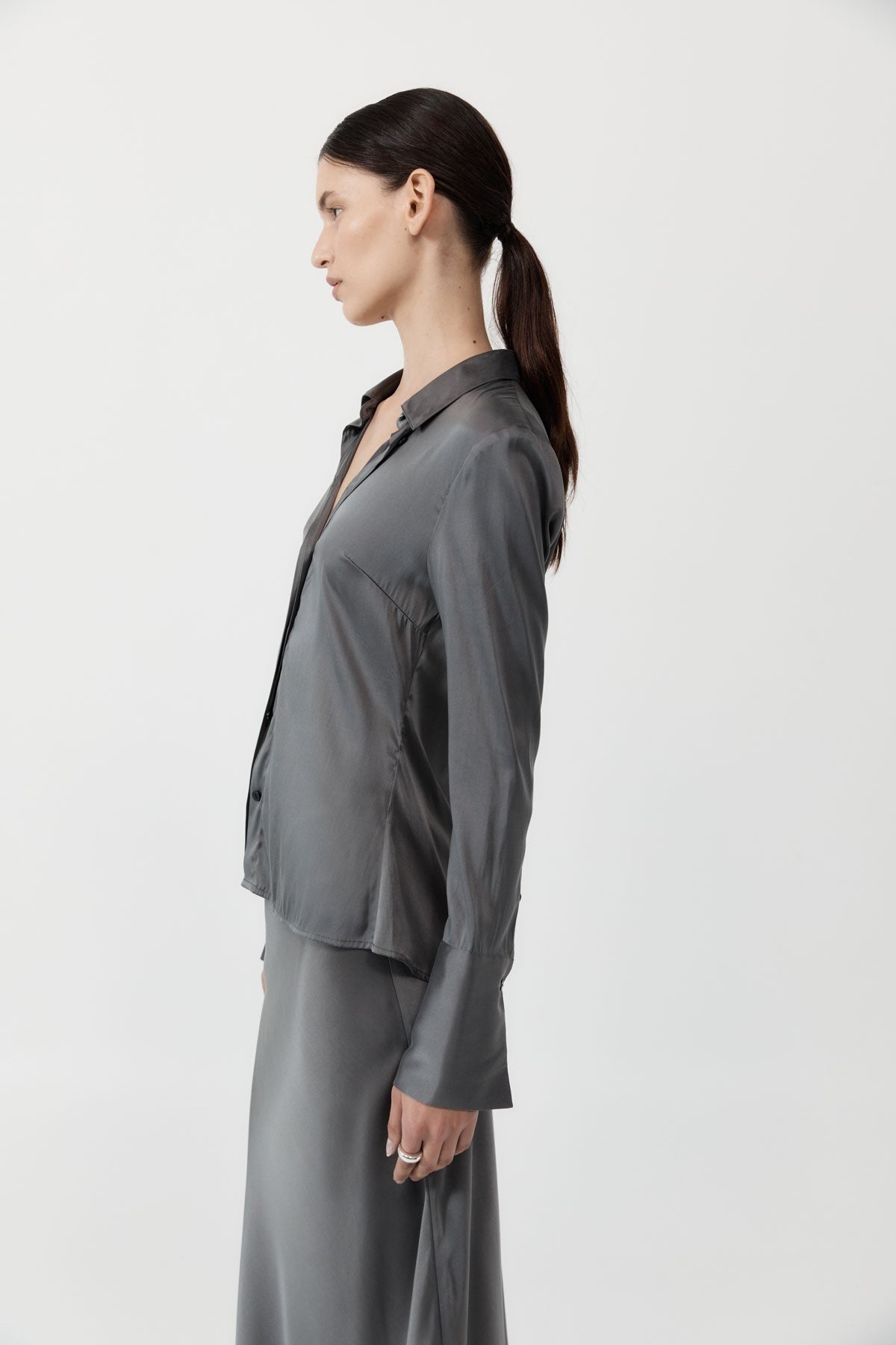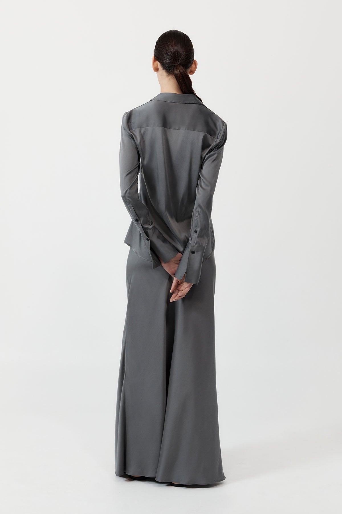 A timeless take on a streamlined silhouette, the Soft Silk Shirt takes its cues from classic 90s and noughties business wear. Boasting a semi-fitted shape, concealed placket, long sleeve, and elongated cuff, the Soft Silk Shirt pairs perfectly with its matching Soft Silk Maxi Skirt.