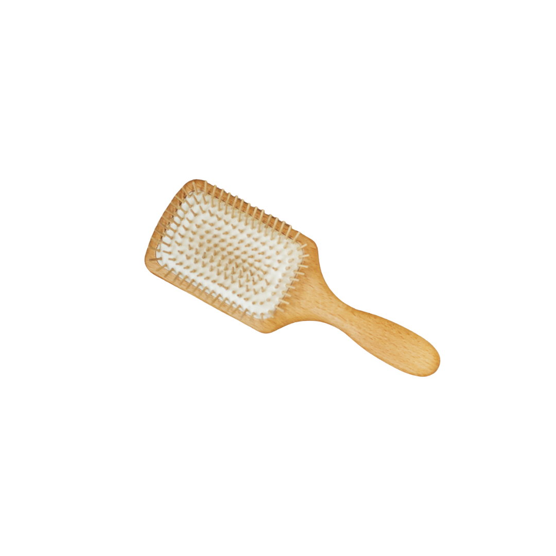 The Paddle Brush is best suited for medium to long hair types. It's made from FSC certified Beech wood with a canvas base and wooden pins. The wooden pins are anti static and work to re distribute the natural oils in your hair. Your brush arrives in fully recyclable packaging and part of the proceeds from your brush are given to 1% for the Planet.